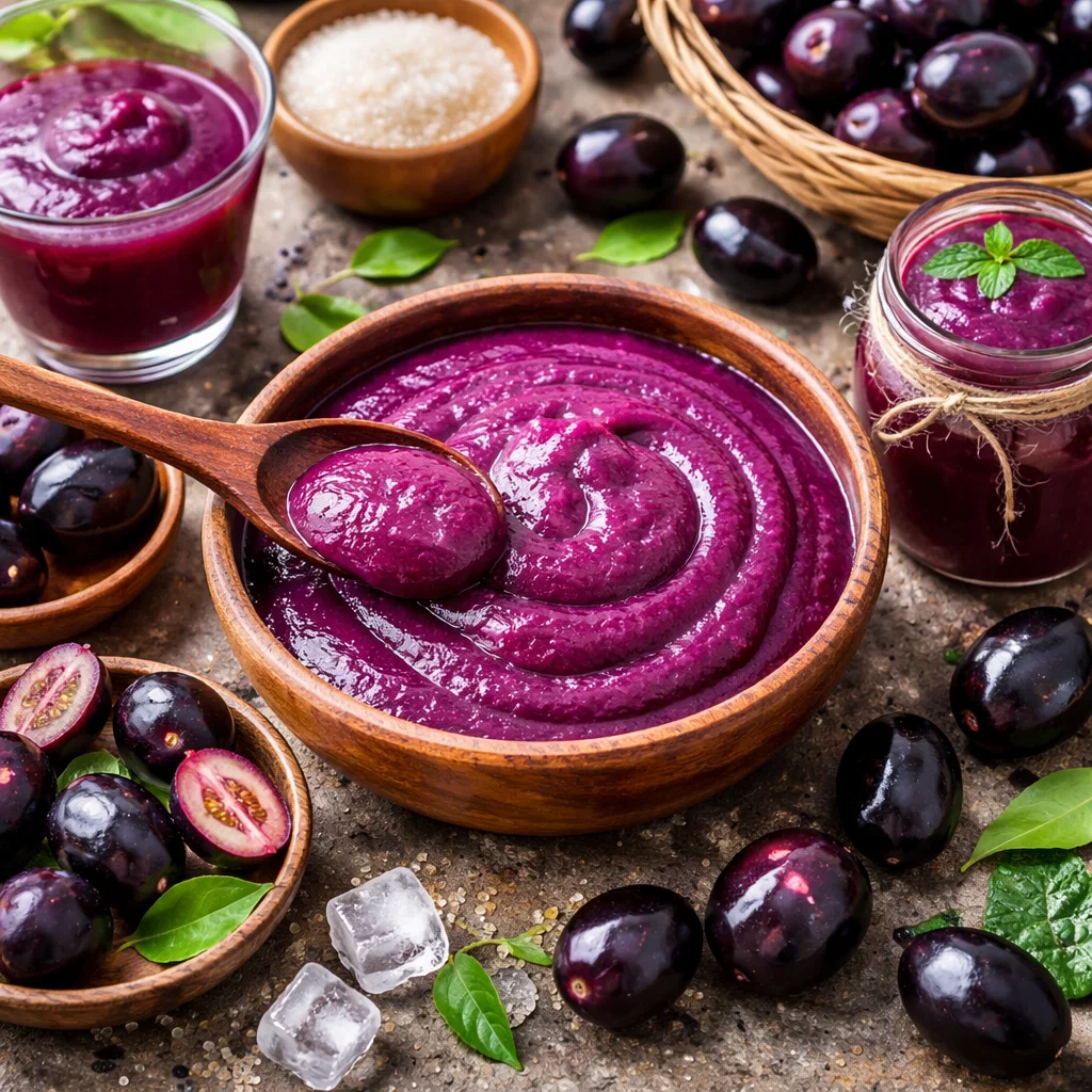 Enjoy the natural richness, vibrant color, and refreshing tang of jamuns anytime with our 100% natural, frozen Black Jamun Slice, crafted for convenience, purity, and exceptional taste.